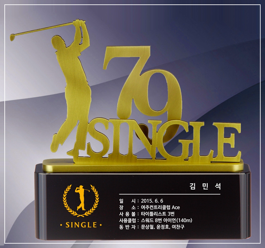 골프 싱글 기념패 트로피 문구