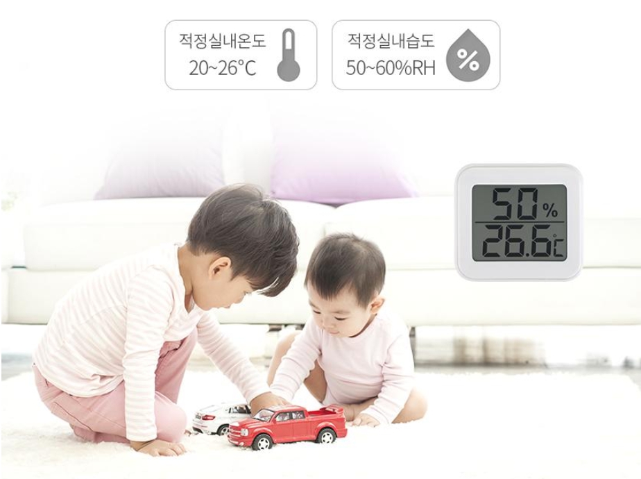 아이들이 있는 집안은 적정 실내환경 조성을 위해 온습도계가 꼭 필요합니다. 플라이토 자석 스탠드 온습도계는 적정 실내온도 20~60도/ 적정 실내습도 50~60%를 유지시켜 쾌적한 실내환경을 만들어줍니다.