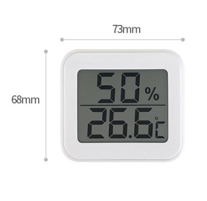액정화면 위쪽에는 습도를 아랫쪽에는 온도를 표시해주어 하나로 간편하게 확인할 수 있습니다. 습도 측정 범위 11~100% 까지 표기로 습도 정확도 ± 2.5%Rh / 온도 측정 범위 영상 10 ~ 50℃ 온도 정확도 ± 1℃ 입니다.