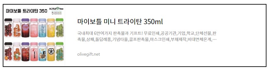 판촉물 답례품으로 꾸준히 인기있는 보틀 주문 제작 마이보틀 미니 트라이탄은 특히, 가볍고 튼튼하고 가격이 저렴해 요즘들어 많이 찾는 아이템입니다.