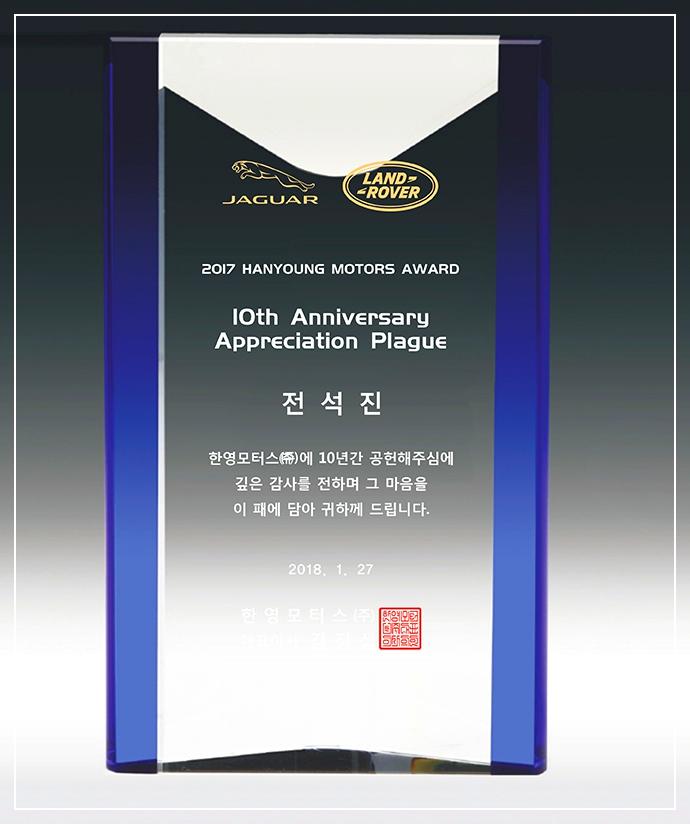 재직기간동안 어려운 여건속에서도 탁월한 능력으로 업무를 수행하는데 큰 어려움을 겪으면서 분골쇄신의 노력으로 임원 청년회 발전에 지대한 공언을 하였기에 모든 정성을 이 패에 담아드립니다.