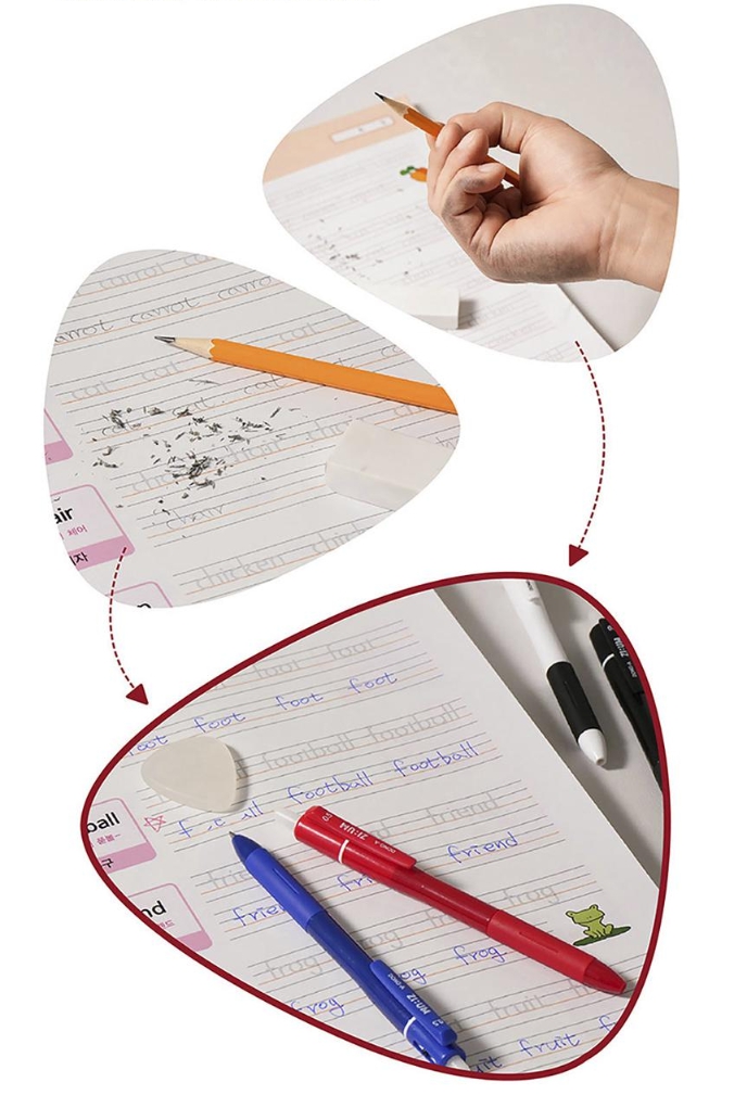 기존 펜들은 필기 시 지워지지 않아 지저분하게 칠하거나 수정테이프로 지우지만 동아 지움펜은 깔끔하게 지워지고 필기도 언제든지 다시 가능합니다. 기존 지워지는 필기구 연필과 샤프 사용 시 손도 지저분해지고 지우개 사용 시 찌꺼기도 많이 생기지만 동아 지움펜은 손도 깔끔하고 지우개 가루도 거의 없습니다.
