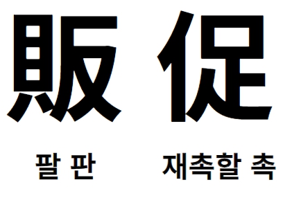 판촉은 한자로 팔 판 販 , 재촉할 촉 促 으로 이에 관련된 단어로는 판촉물( 販促物 ) , 판촉전( 販促戰) 등이 있습니다.
