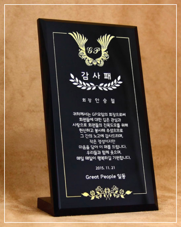 아래의 회사 감사패 문구 초안의 직책과 성명, 호칭 등 을 수정하시거나 다른 글귀를 응용하여 감사패 제작시 참고하시면 좋을것 같습니다.